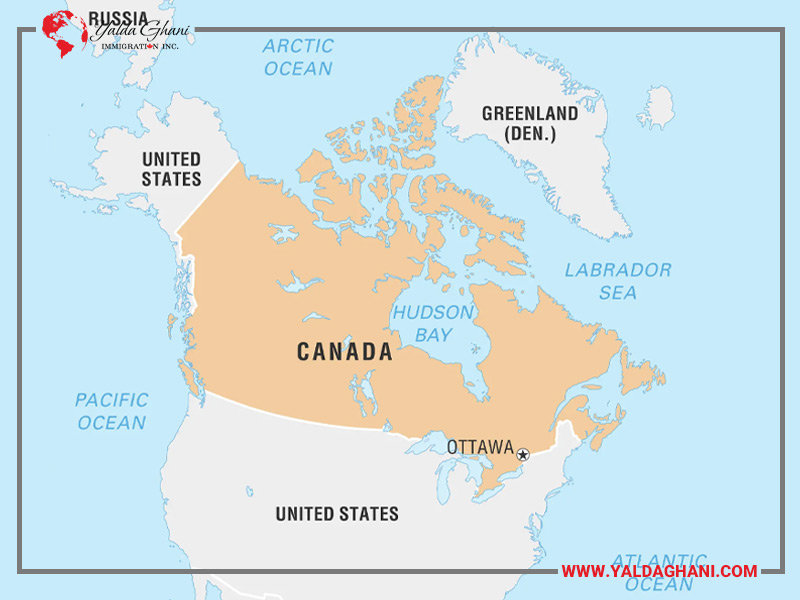 کانادا کشوری پهناور در نیمکره شمالی است که از شرق تا اقیانوس اطلس، از غرب تا اقیانوس آرام و از شمال تا اقیانوس منجمد شمالی امتداد یافته و این گستردگی جغرافیایی تعیینکننده مرزهای آن است.